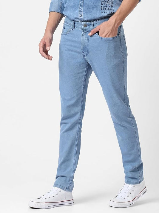 Denim Men Sky Blue Cotton Regular Fit Casual Jeans
